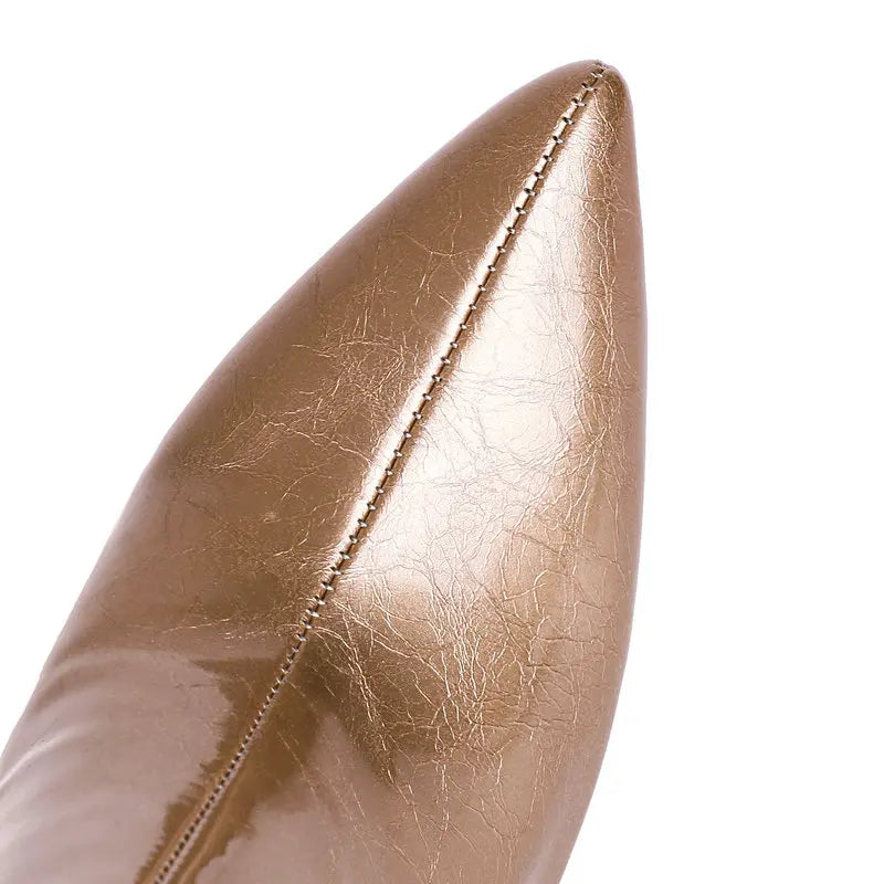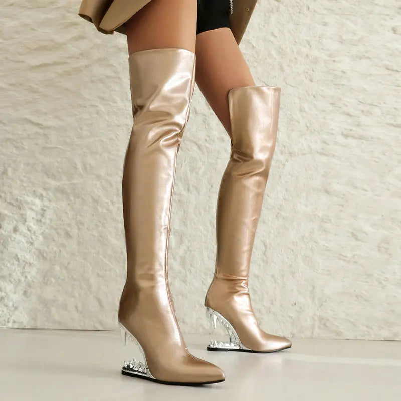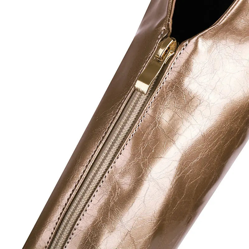 Adaptées à celles qui recherchent un confort sans compromis, ces cuissardes s’enfilent facilement grâce à une fermeture ZIP discrète. Idéales pour les looks streetwear ou soirée chic, elles offrent une allure structurée tout en assurant une sensation agréable grâce à leur doublure en toison et à une semelle extérieure en caoutchouc pour la traction. Le talon moyen (5–8 cm) garantit stabilité et élégance, même lors de longues sorties. La coupe au-dessus du genou et la largeur des mollets assurent une silhouette fluide sans serrer, à associer avec robes, shorts longs ou jupes asymétriques.