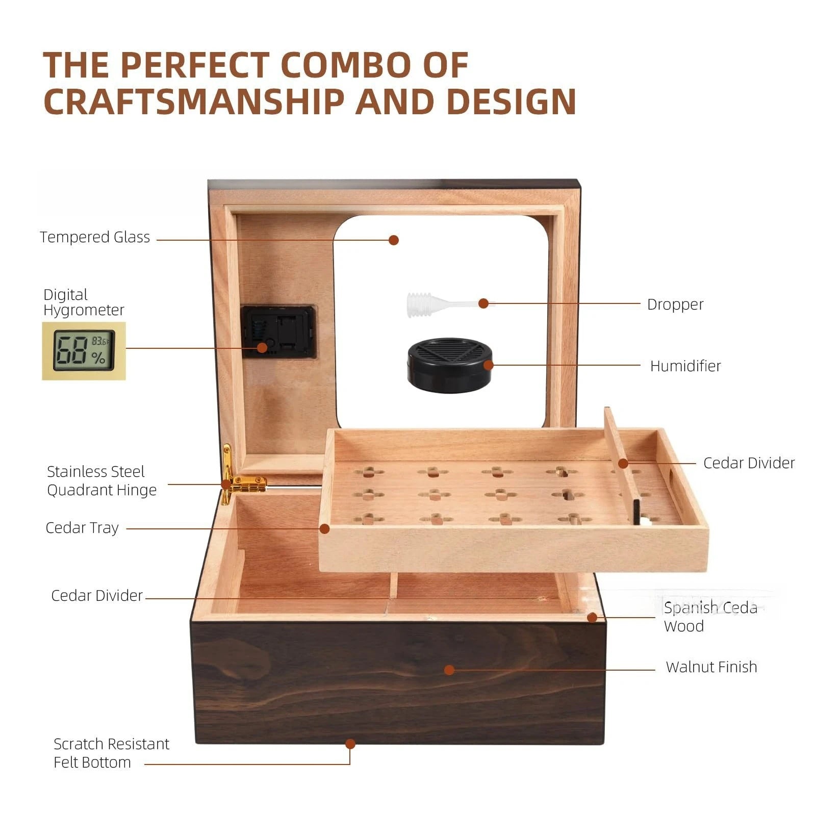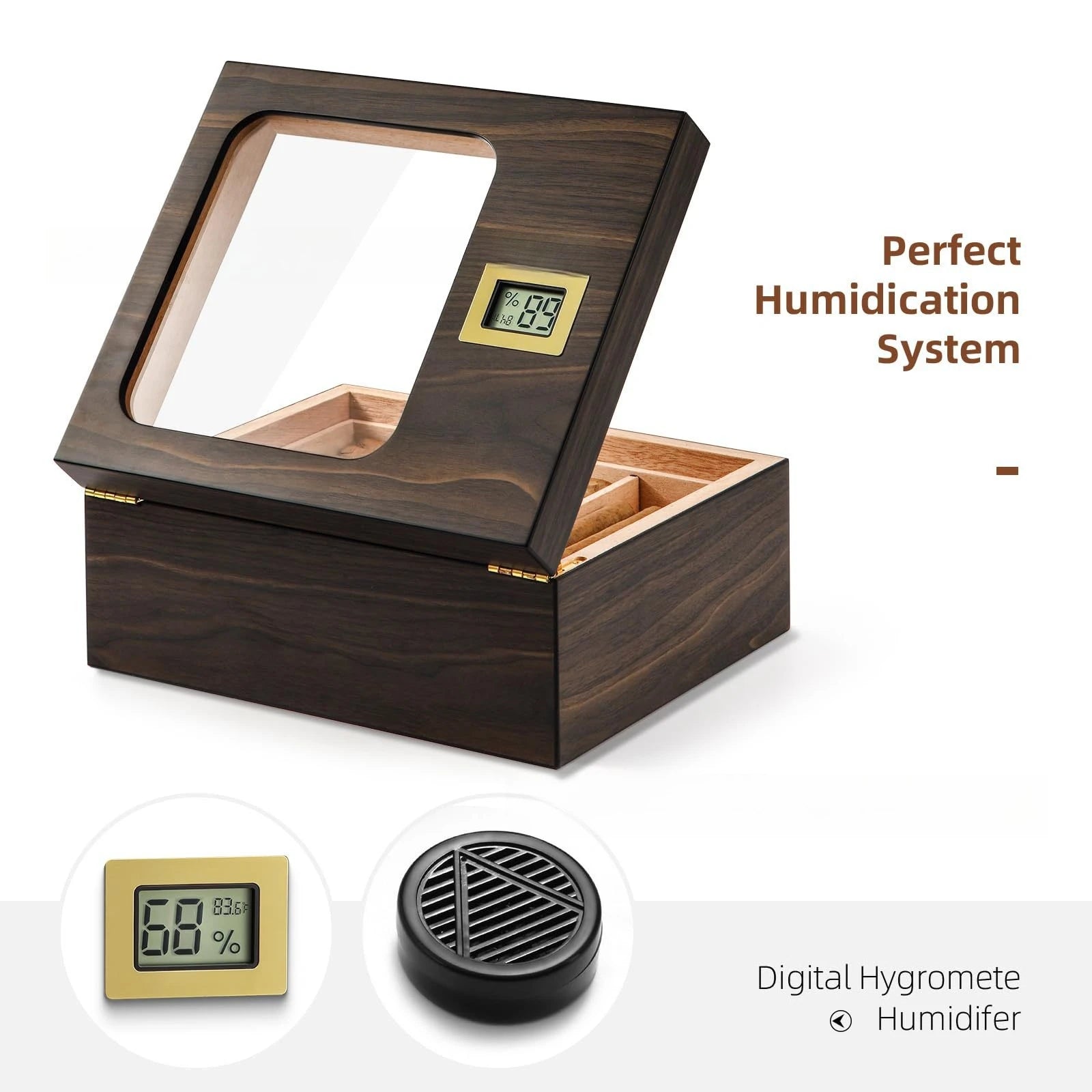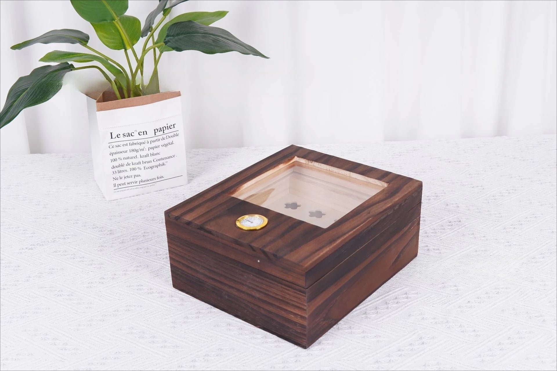 Cave à cigares en bois – Couvercle transparent, hygromètre, design compact
