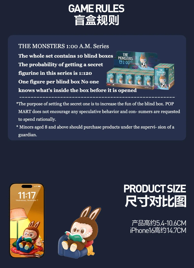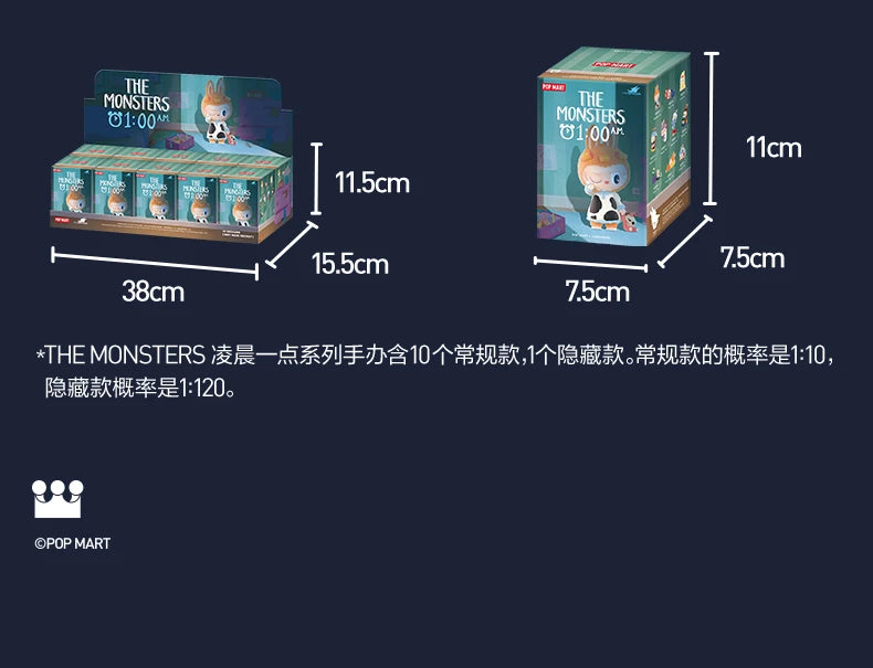 POP MART Labubu Les Monstres 1:00 A.M. – Figurine PVC 1/12, Boîte Mystère