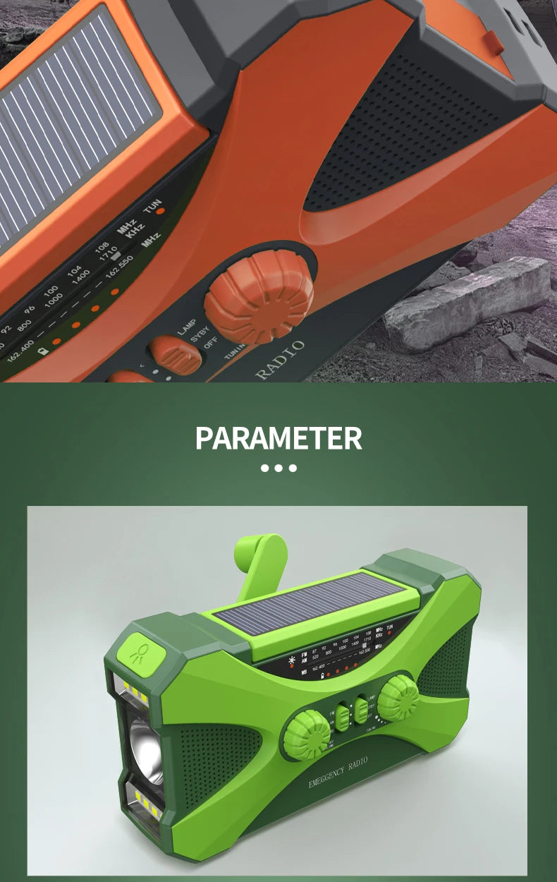 Affrontez les pannes de courant, les intempéries ou vos sorties outdoor avec cette radio de secours portable 10000mAh. Grâce à ses nombreuses fonctions, elle vous accompagne en toute situation, avec efficacité et sécurité.