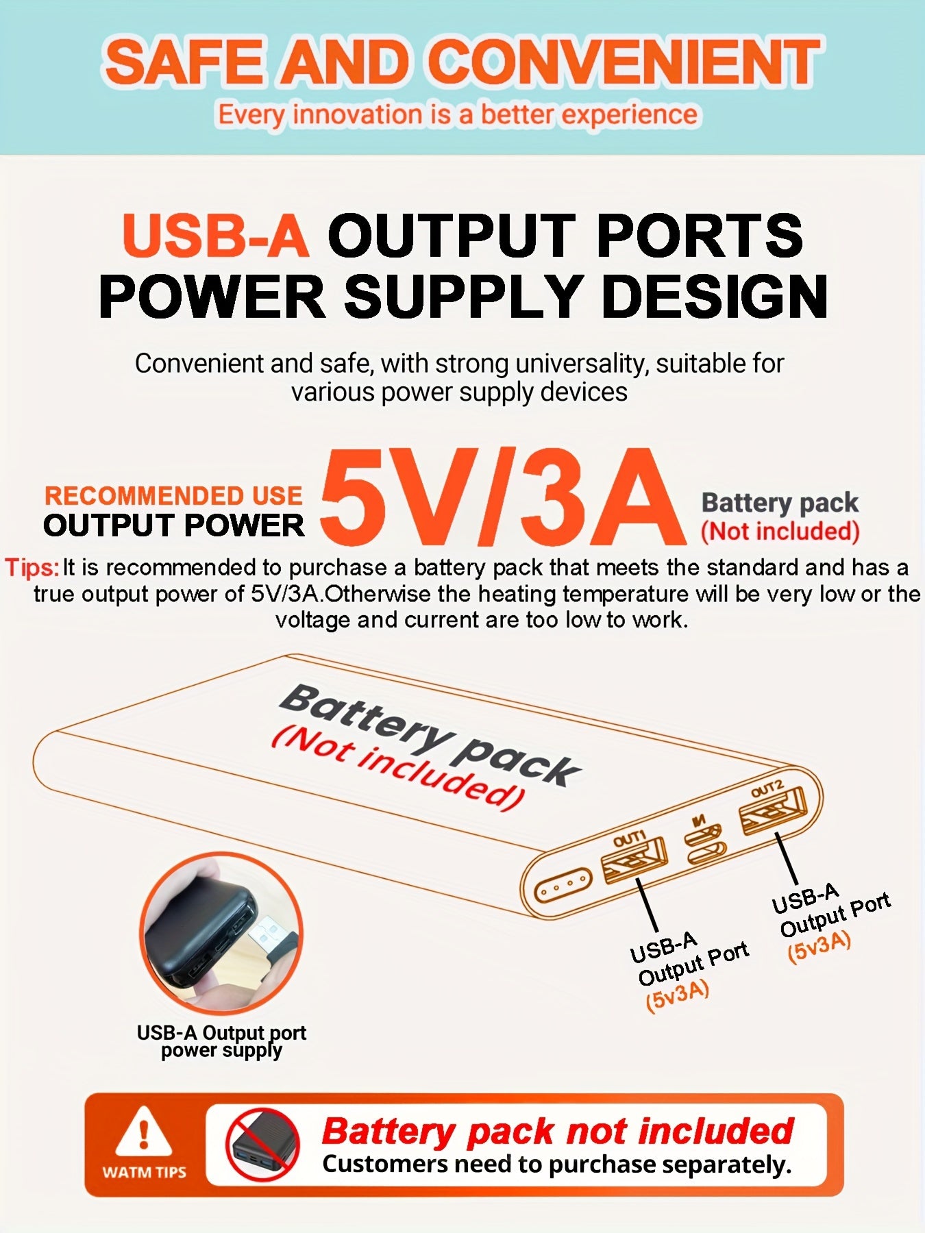 Important : la batterie externe (powerbank) n’est pas fournie avec le produit. Compatible avec les batteries USB standards.